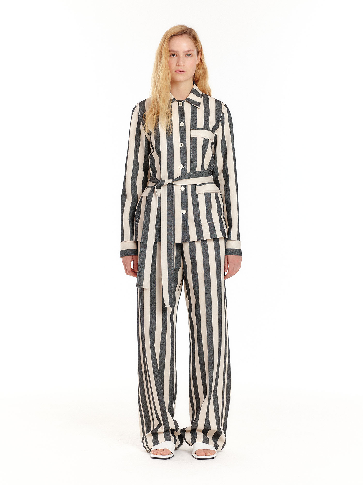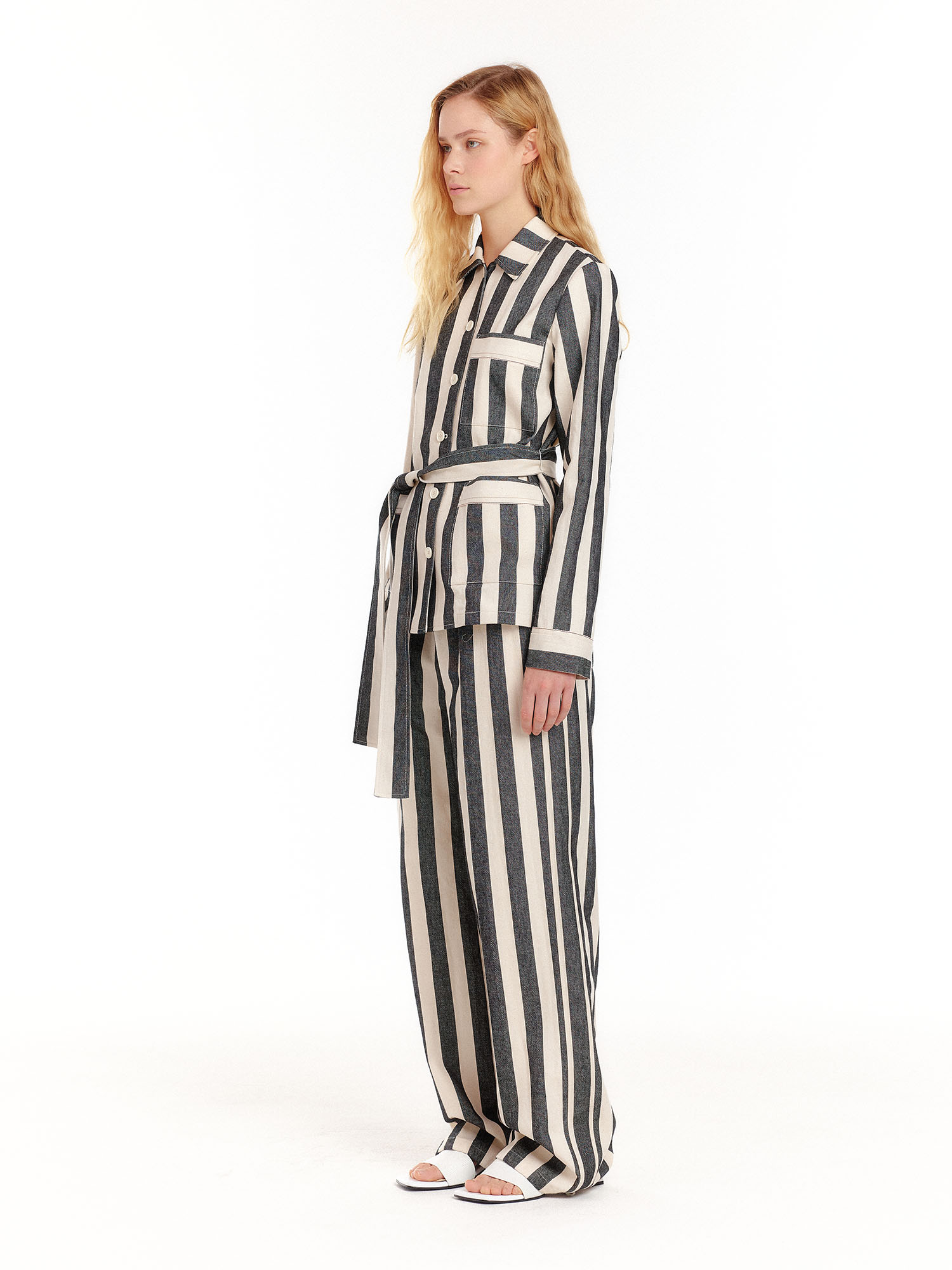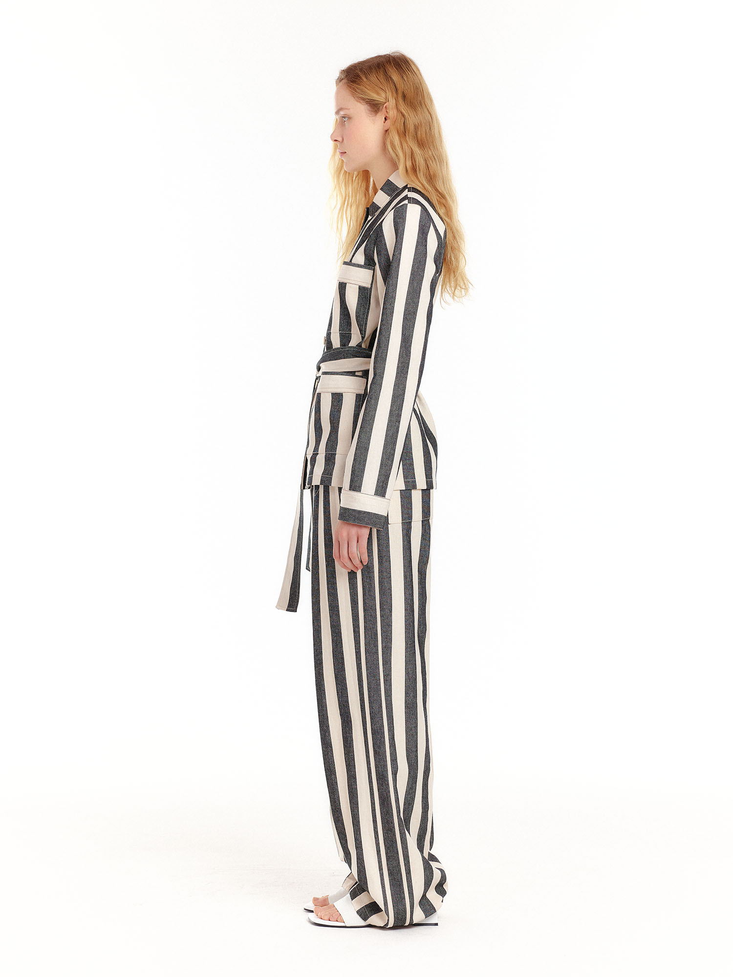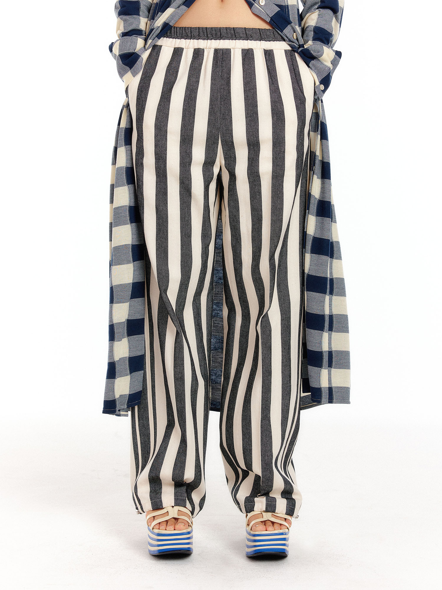 - 스트라이프 패턴의 와이드 팬츠입니다.