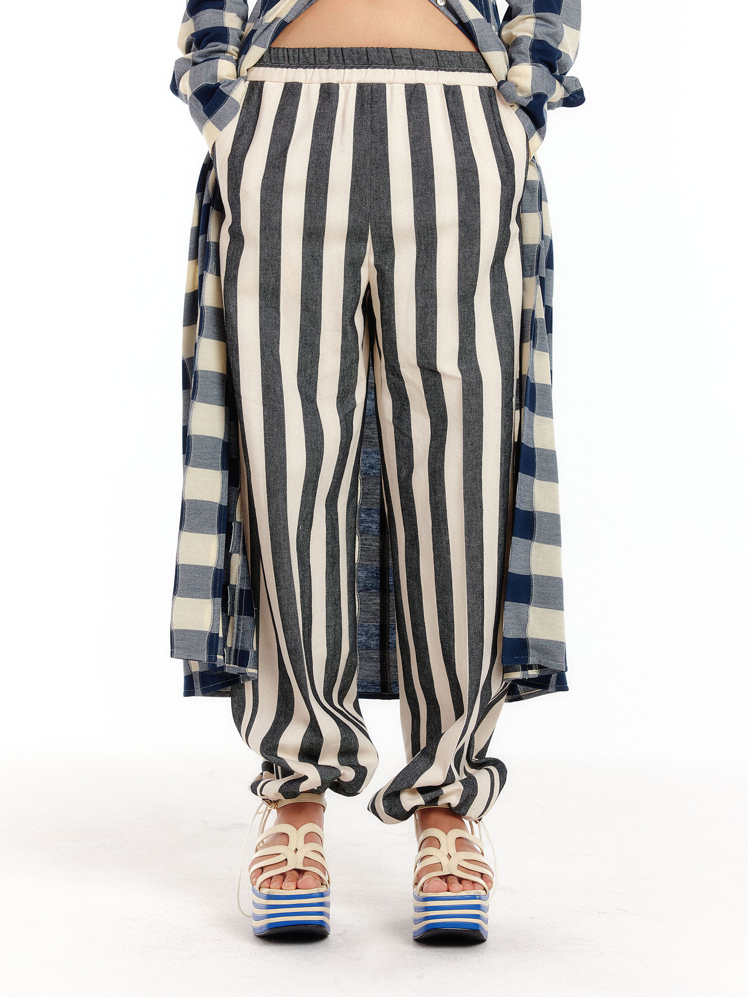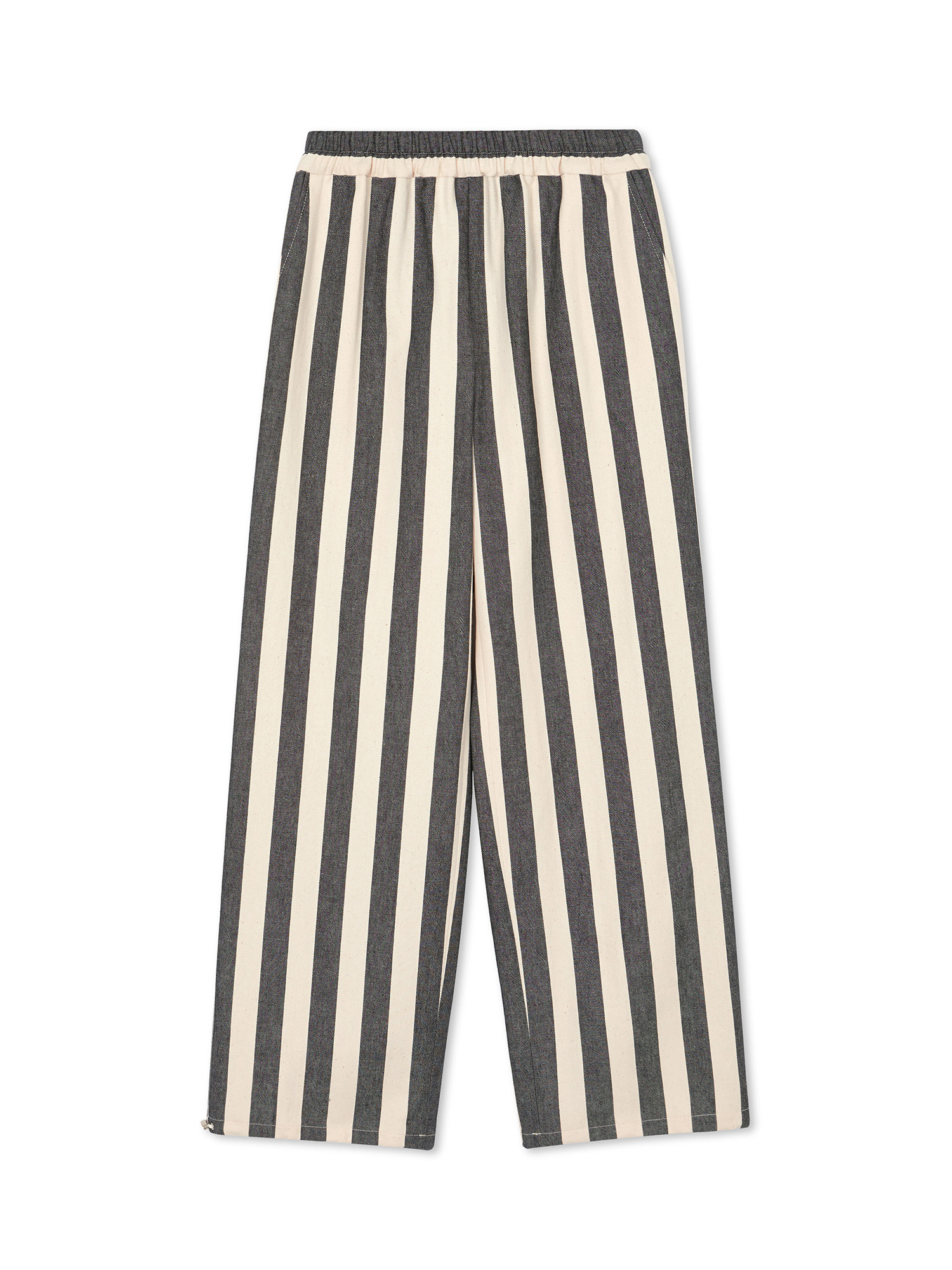 UP Drawstring hem wide-leg Pants - Ivory/Black Stripe