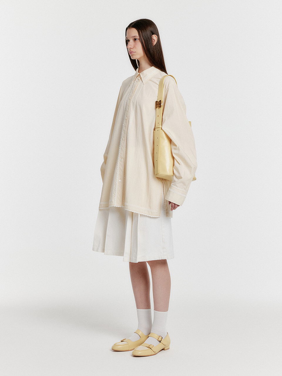 - 부드러운 옐로우 컬러가 포인트인 플랫 슈즈입니다.
