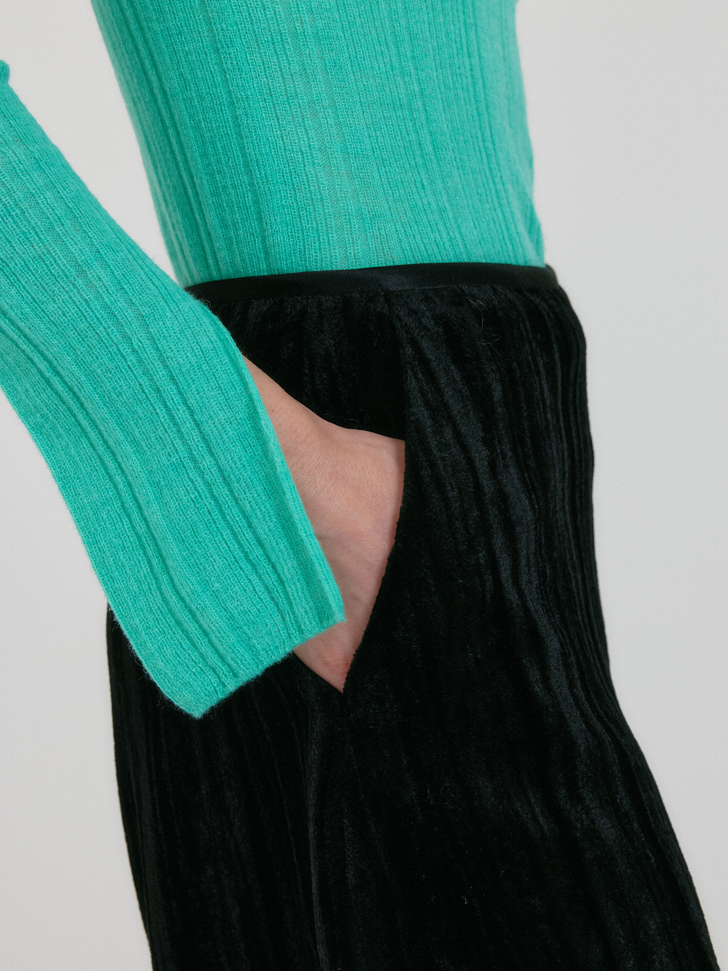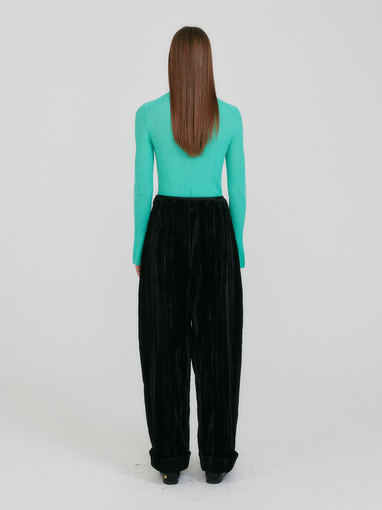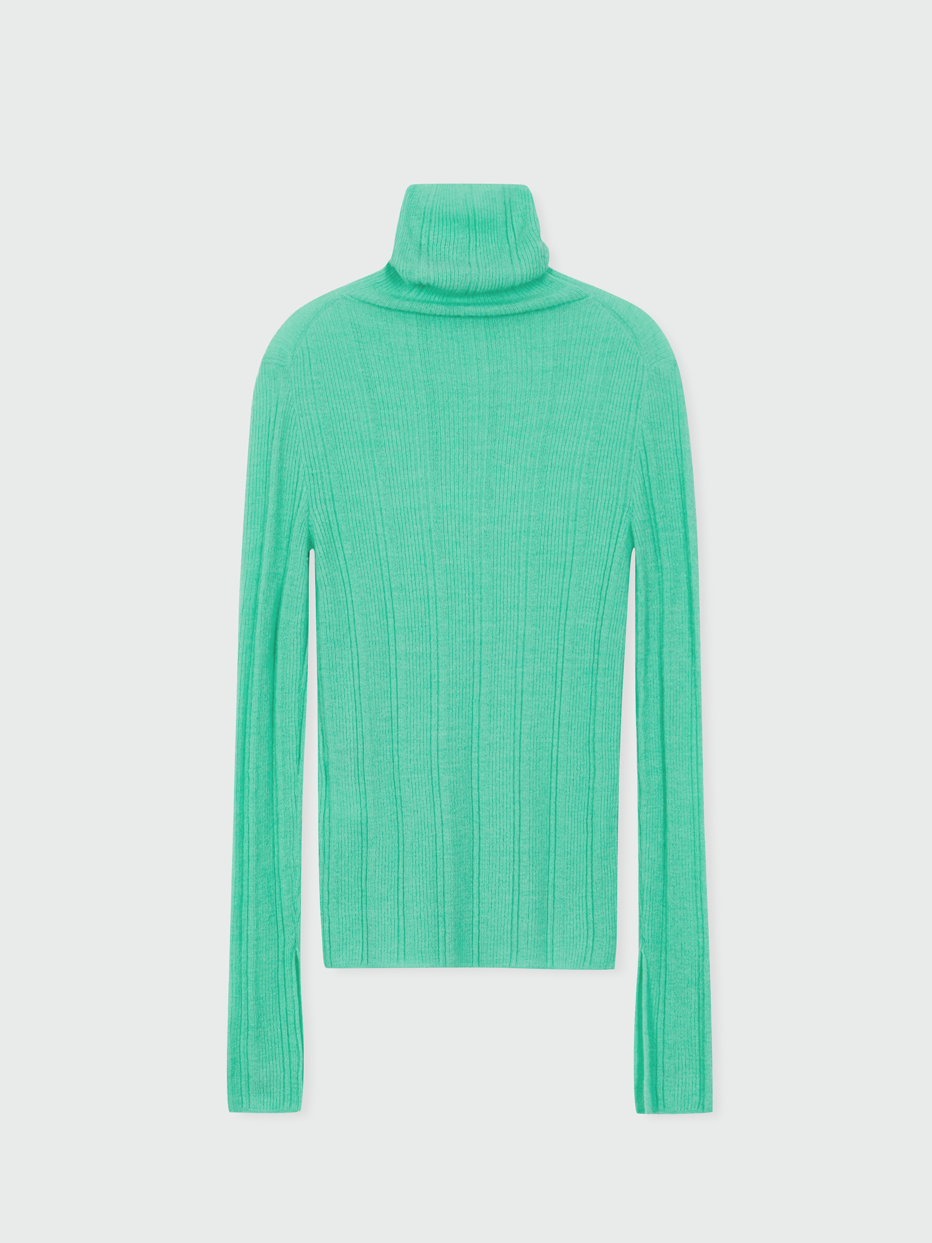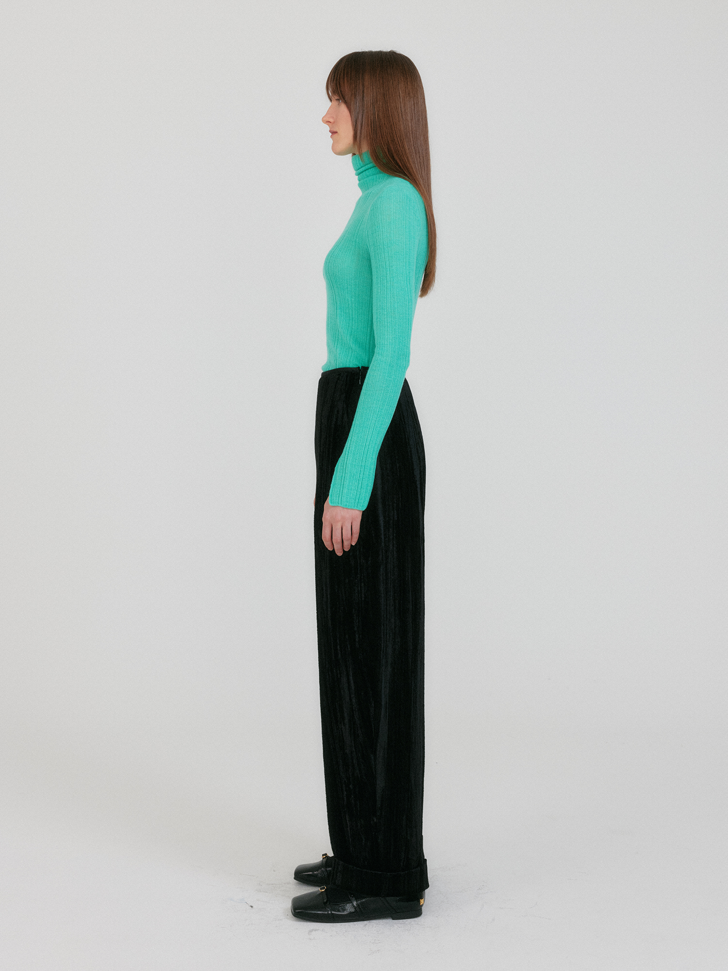 - 얇은 두께감으로 타이트한 실루엣의 하이넥 니트 탑