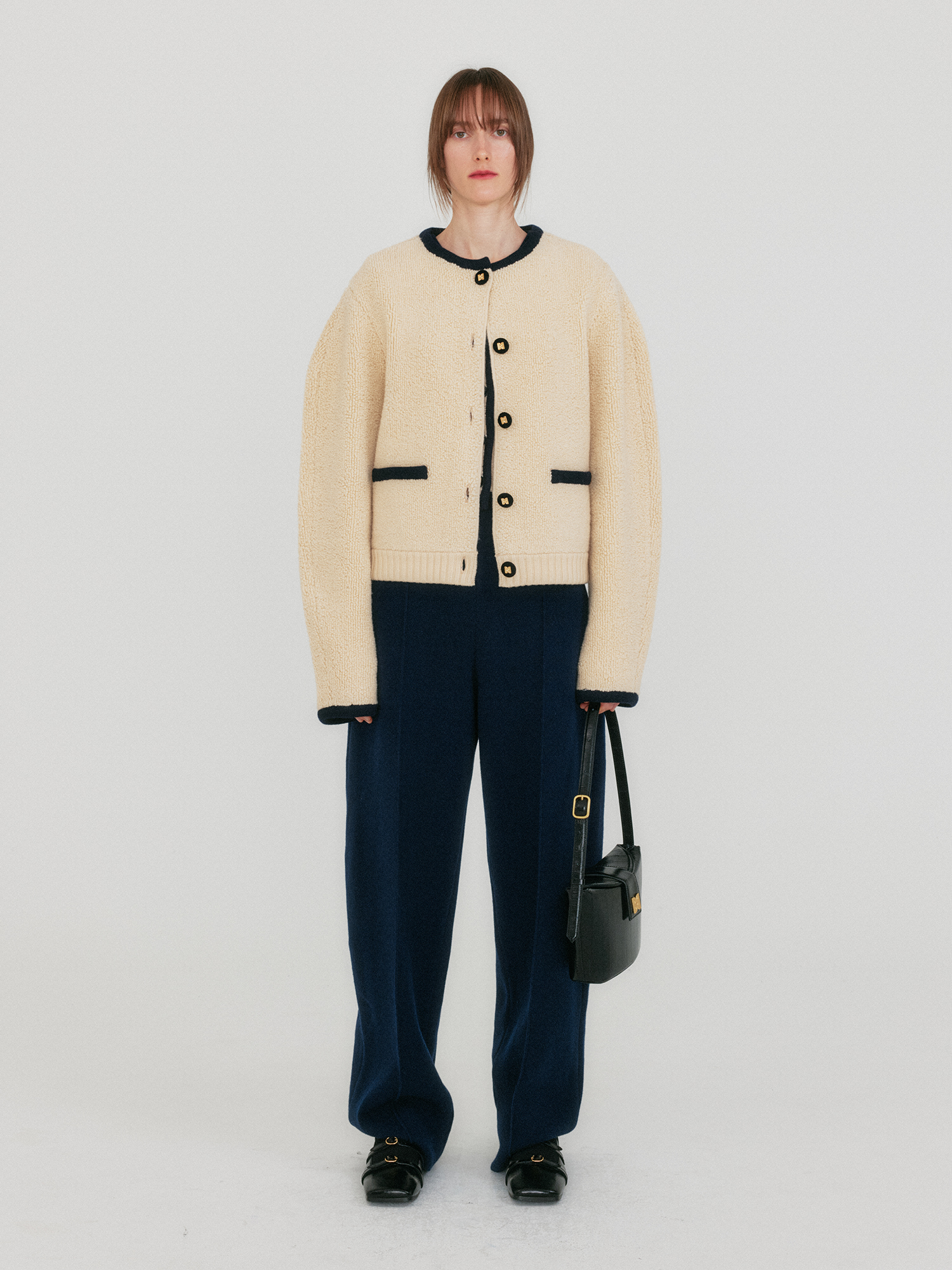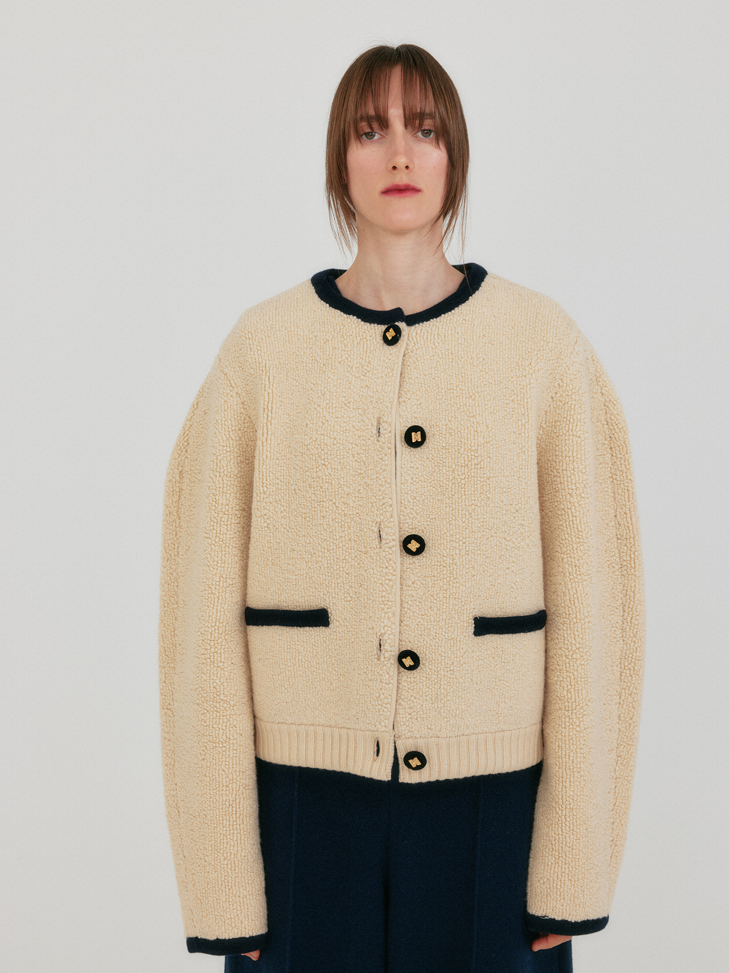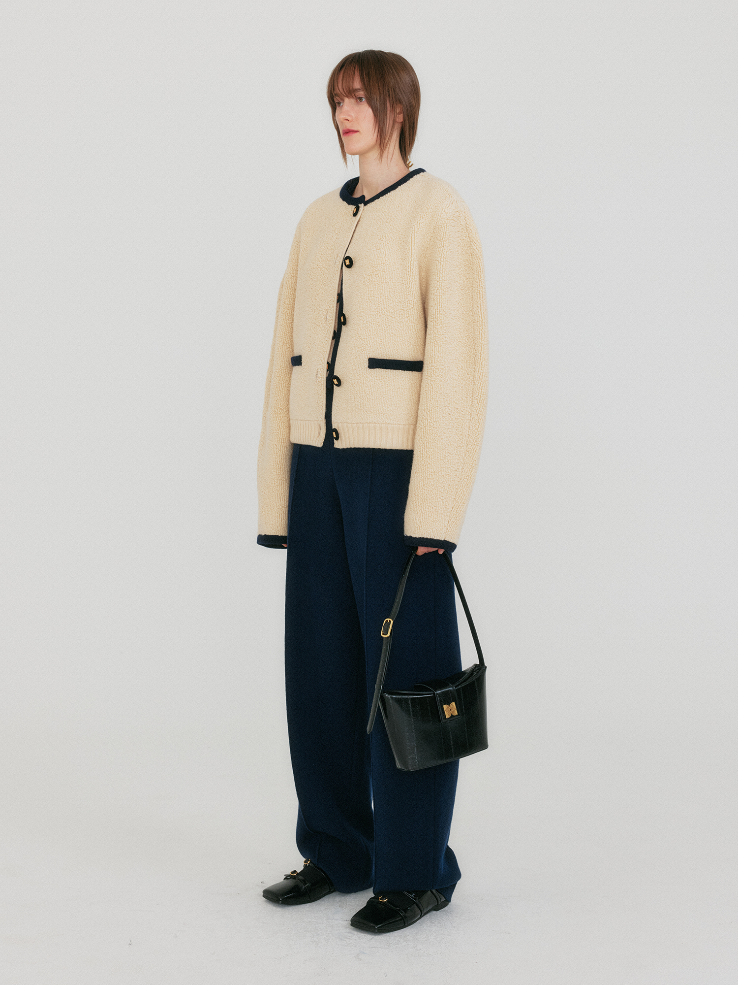 - 블랙 트리밍이 포인트인 울 니트 가디건