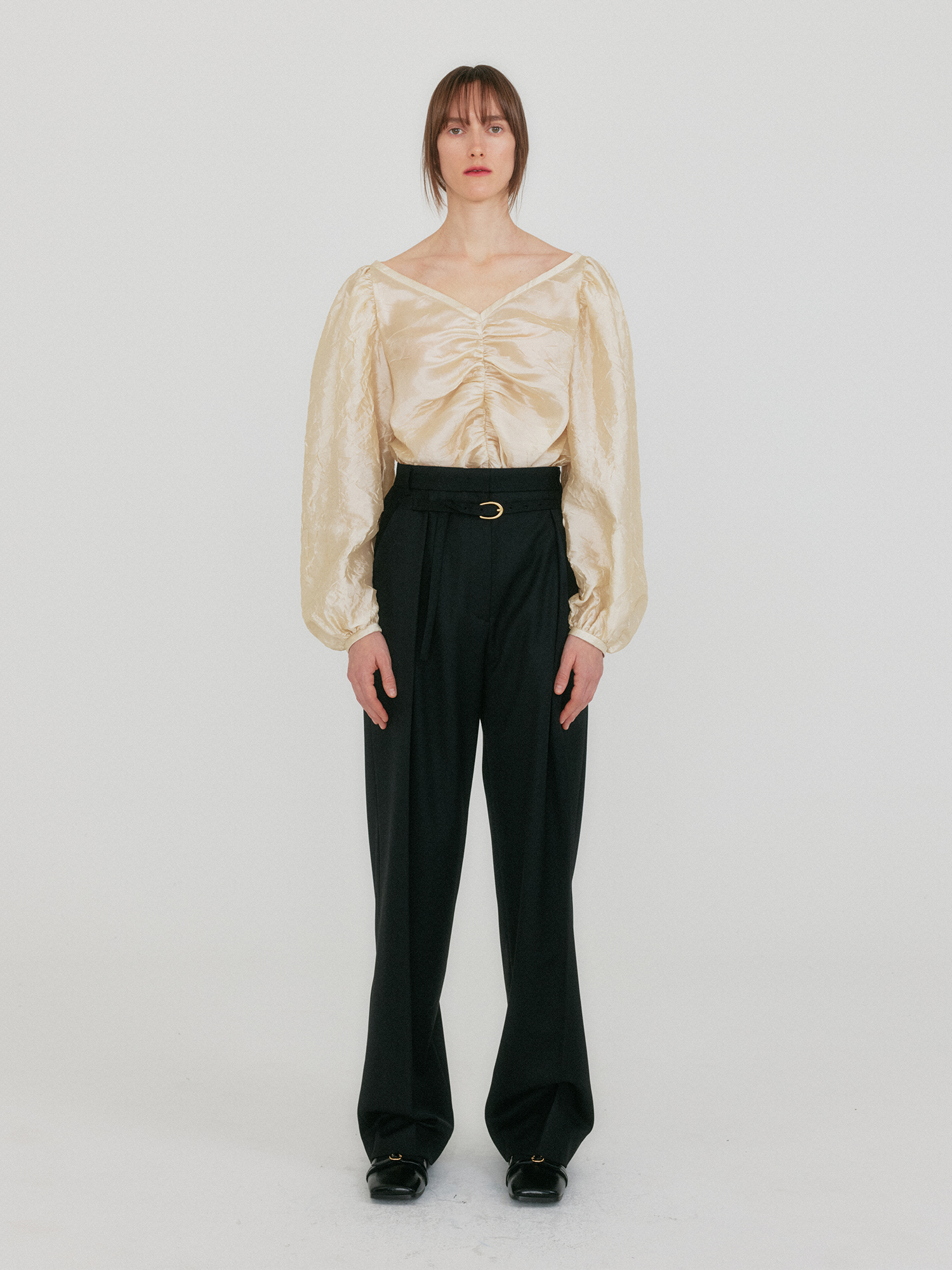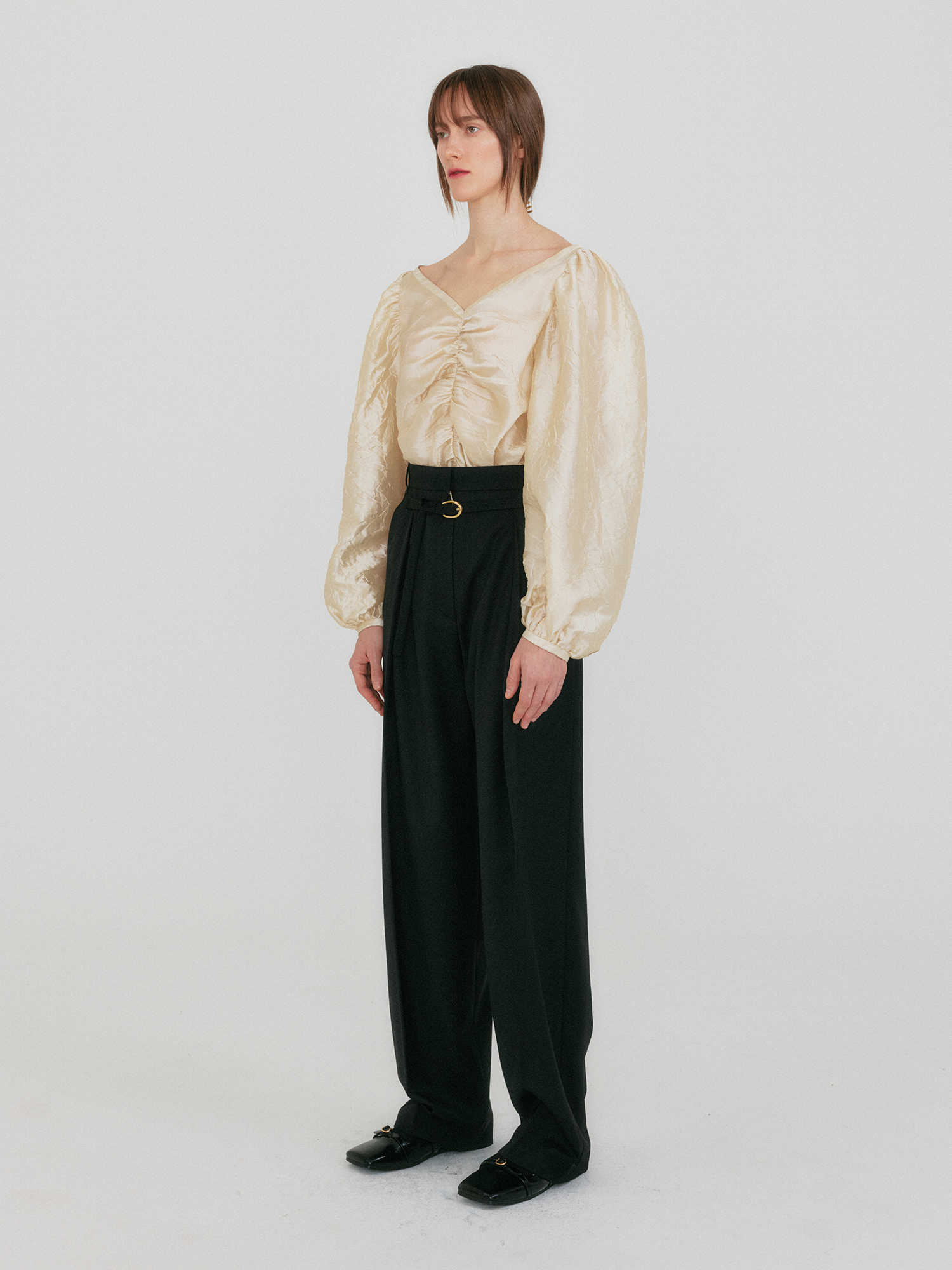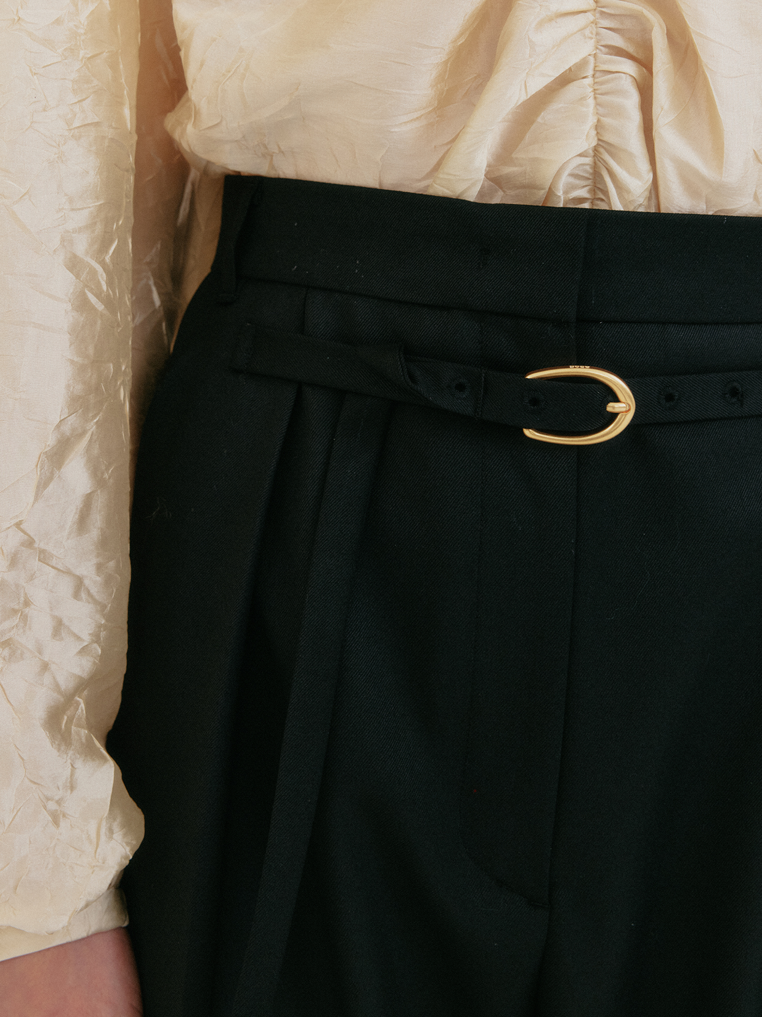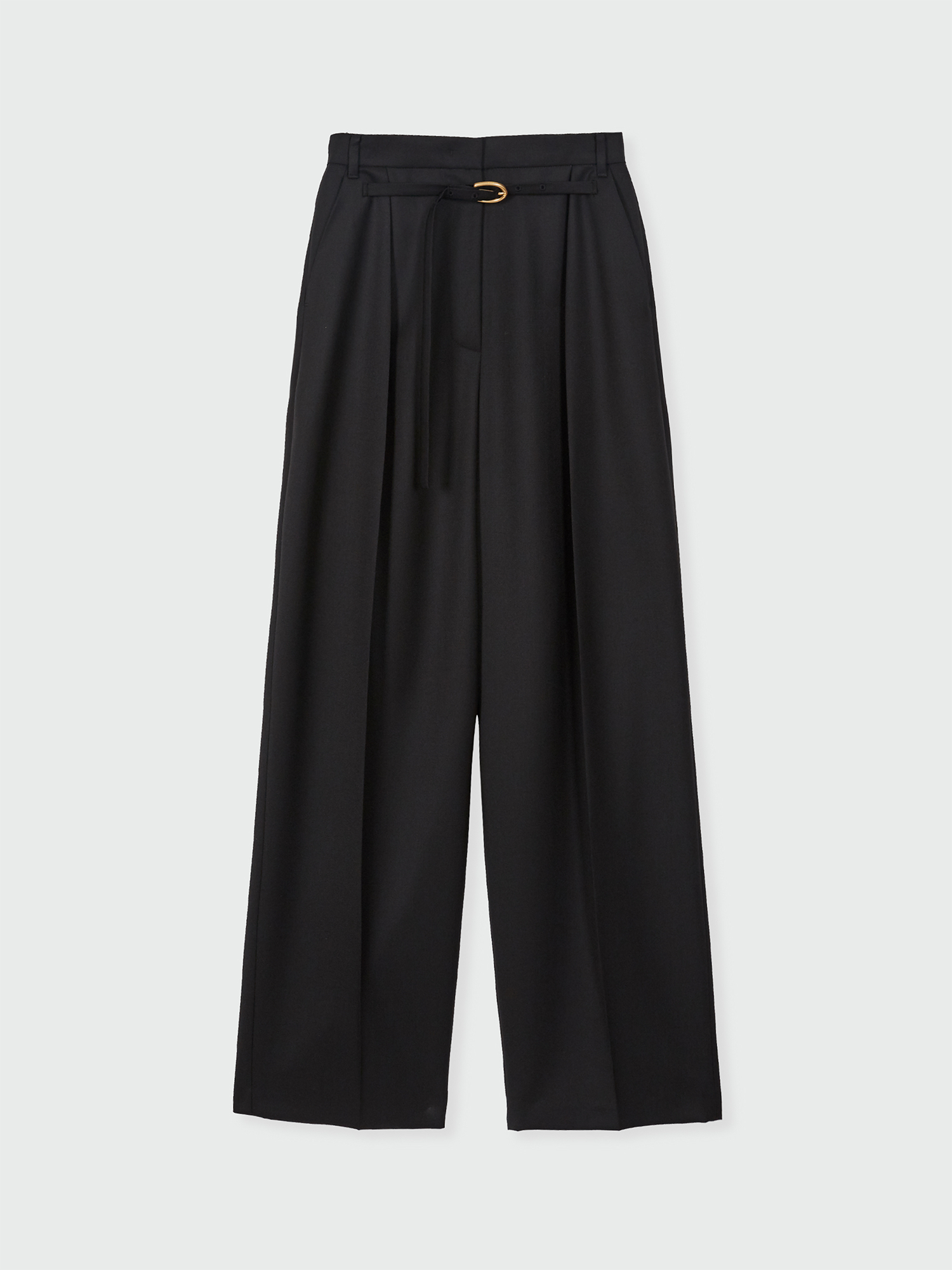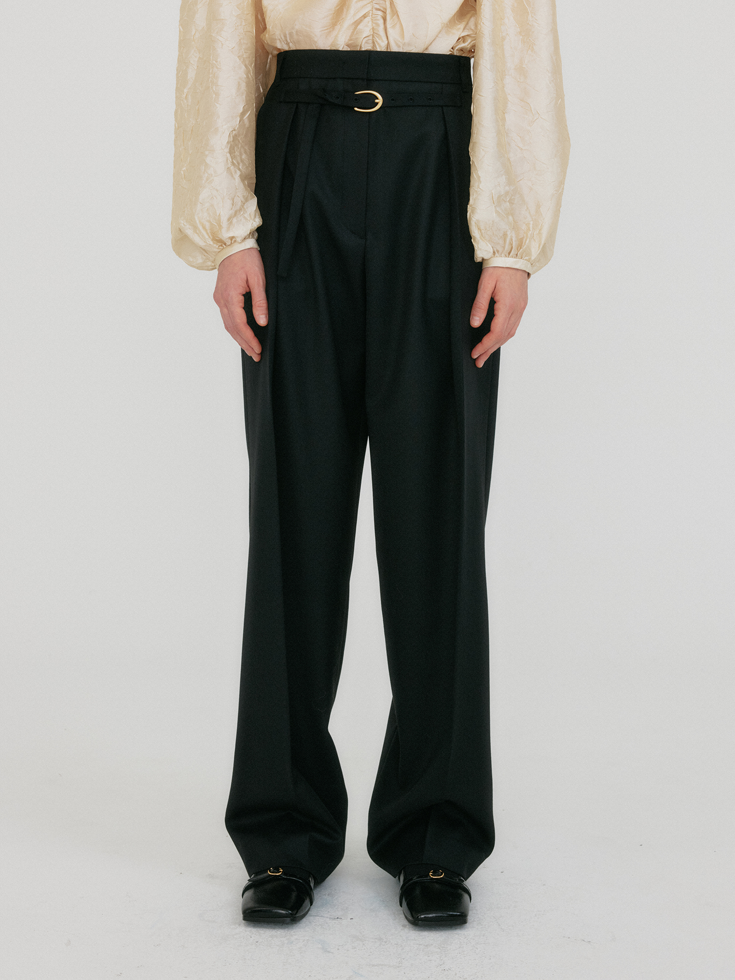 - 허리의 벨트가 포인트 핀턱 팬츠