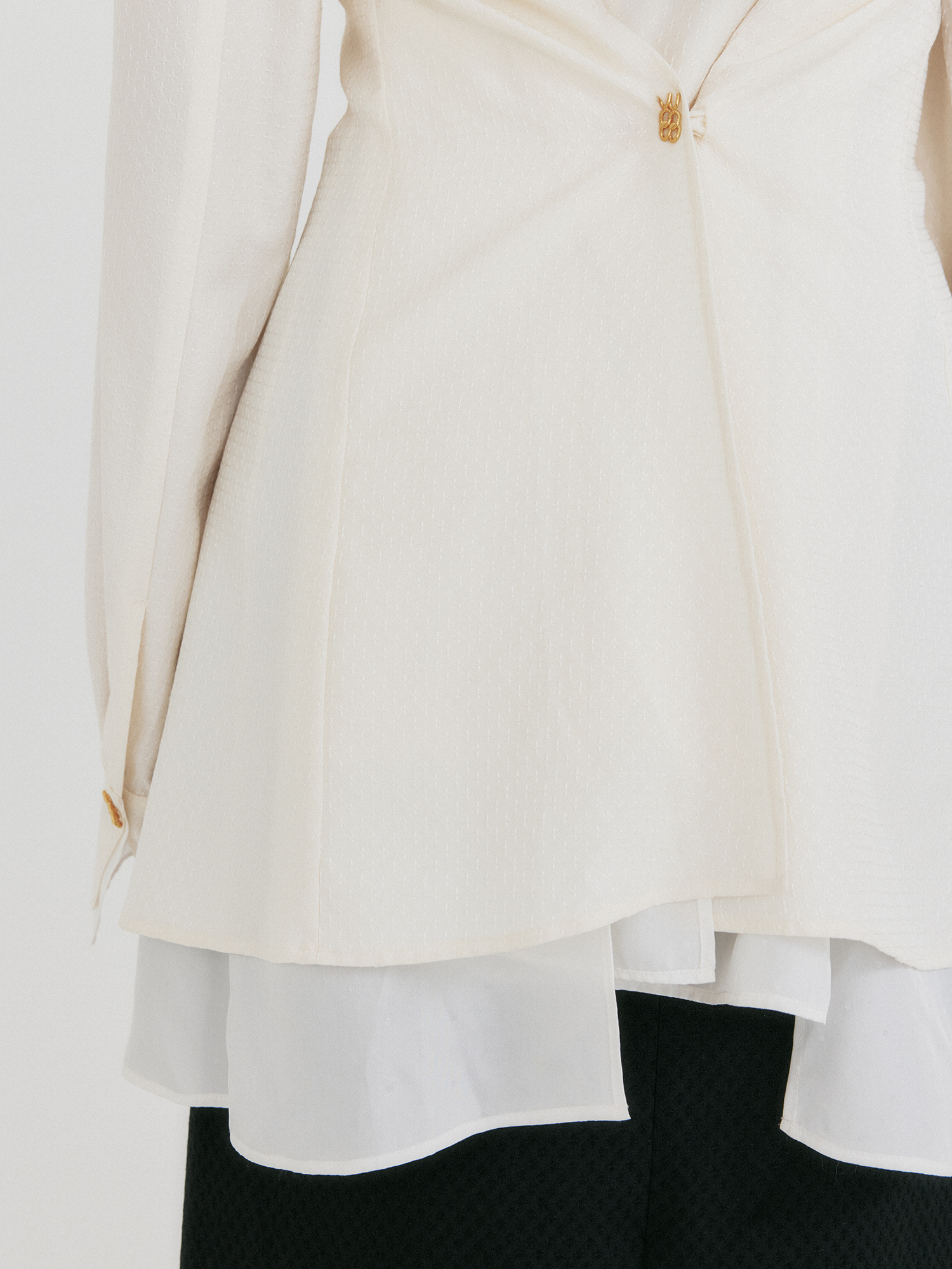 - 백 버튼 디테일로 2WAY 실루엣 연출 가능
