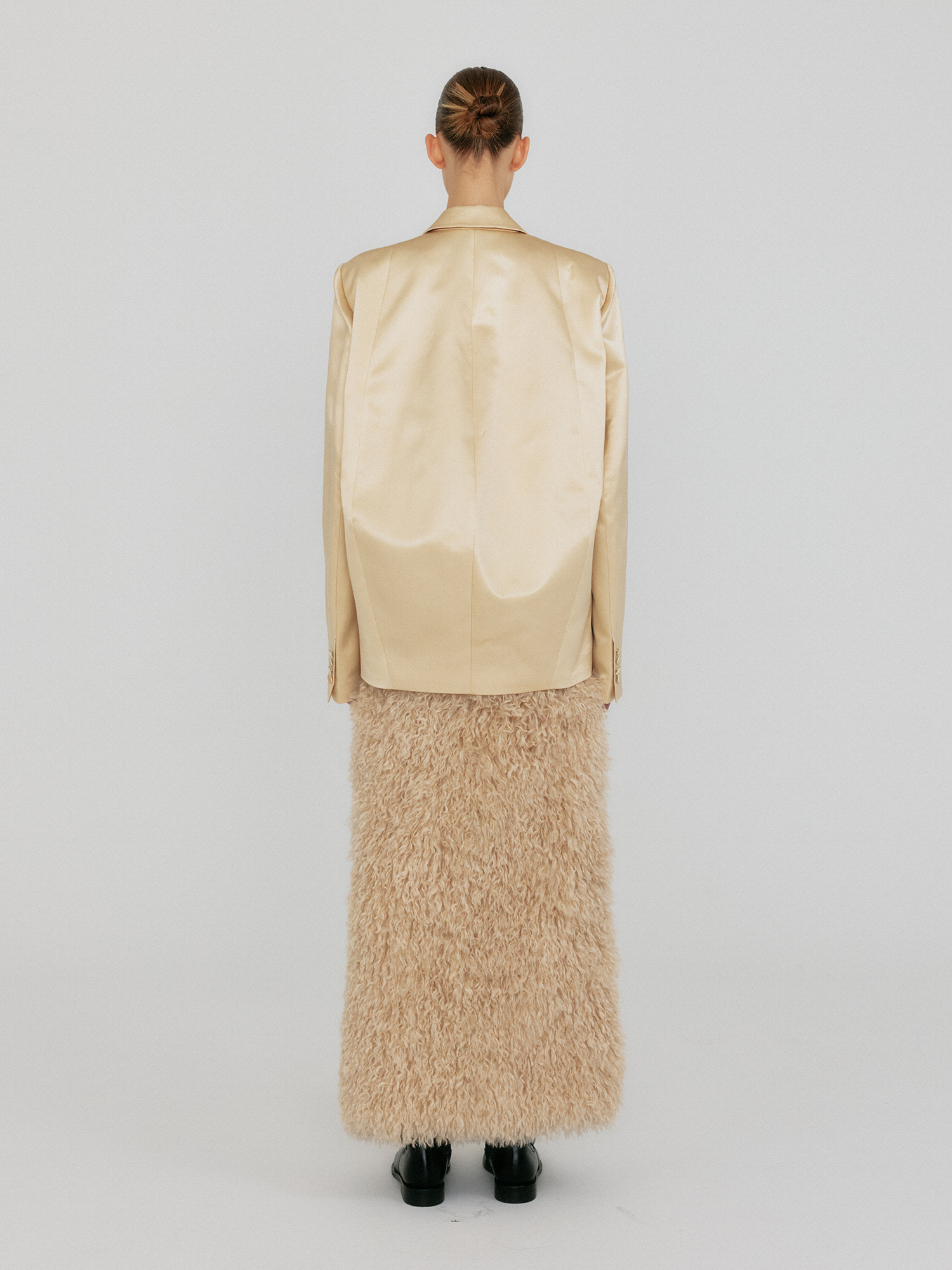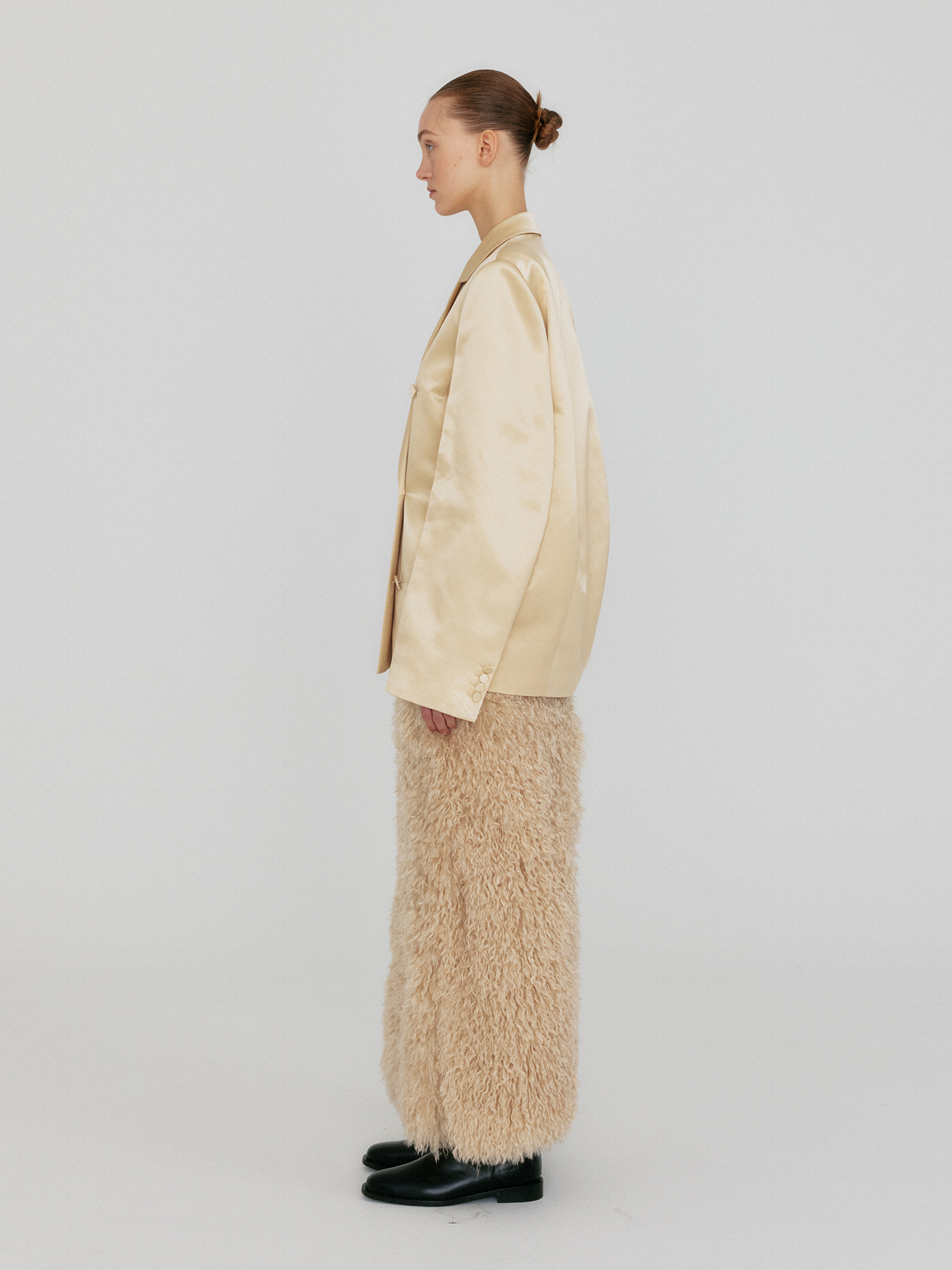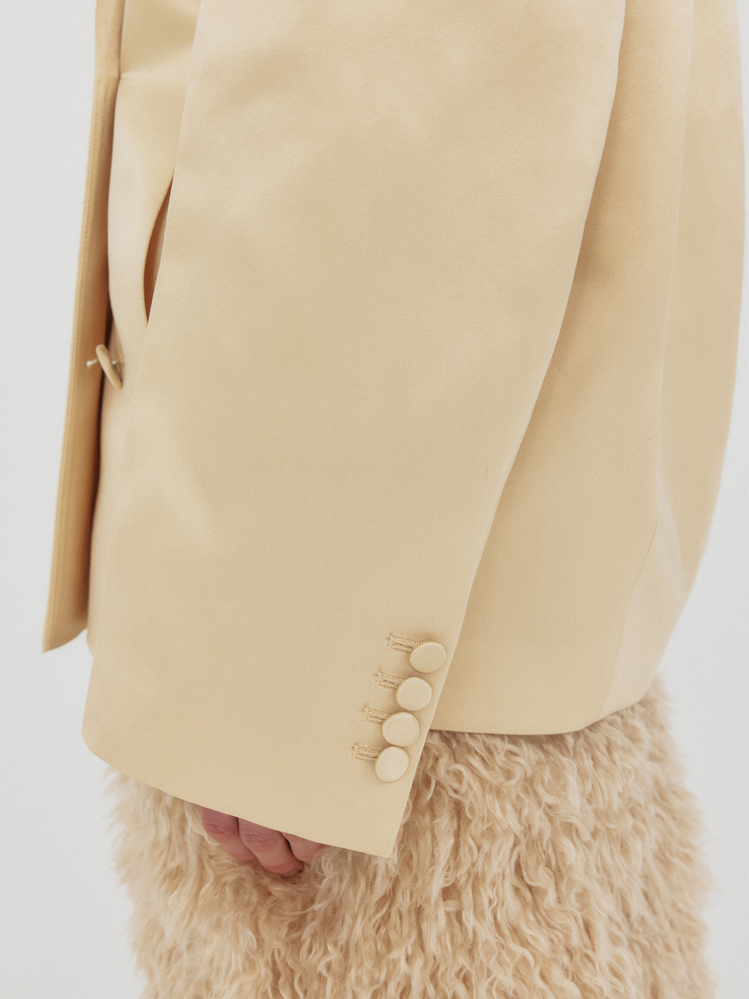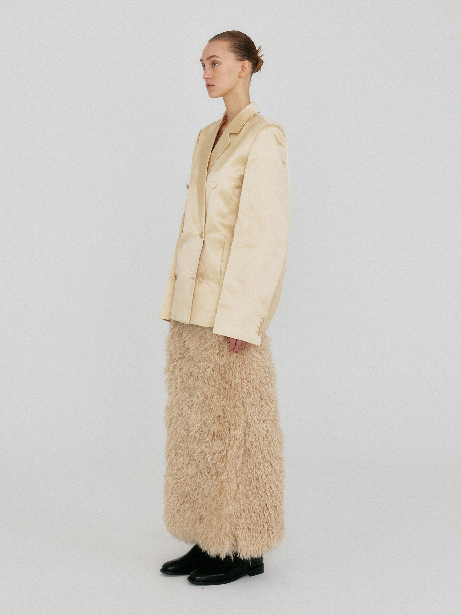 - 실크 혼방 소재의 더블 버튼 자켓