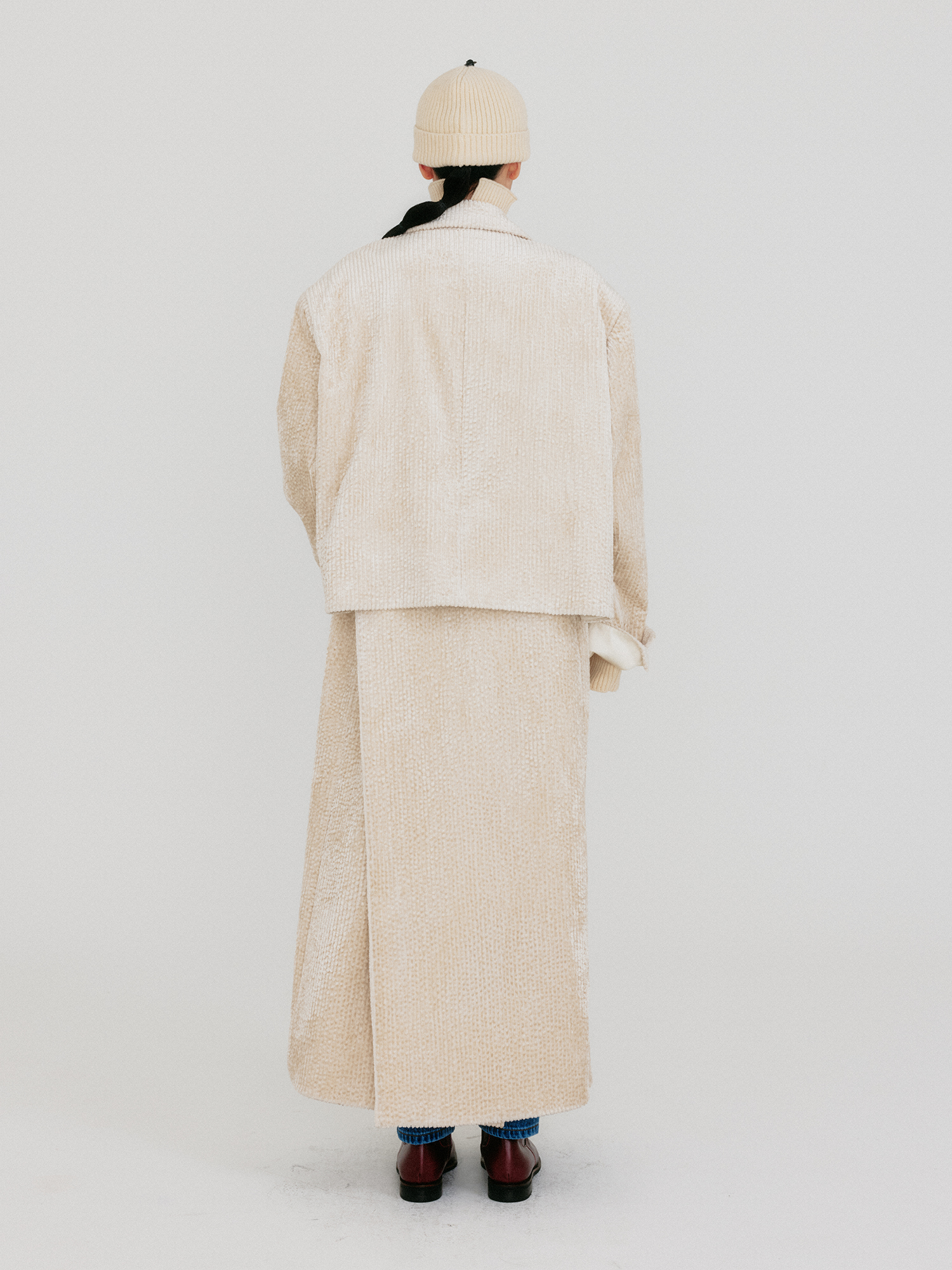 MATERIAL : Shell : Rayon 63%, Cotton 35%, Polyuretan 2% (Fabric form Japan) / Trim : Wool 76%, Silk 34% / Lining : Polyester 100%