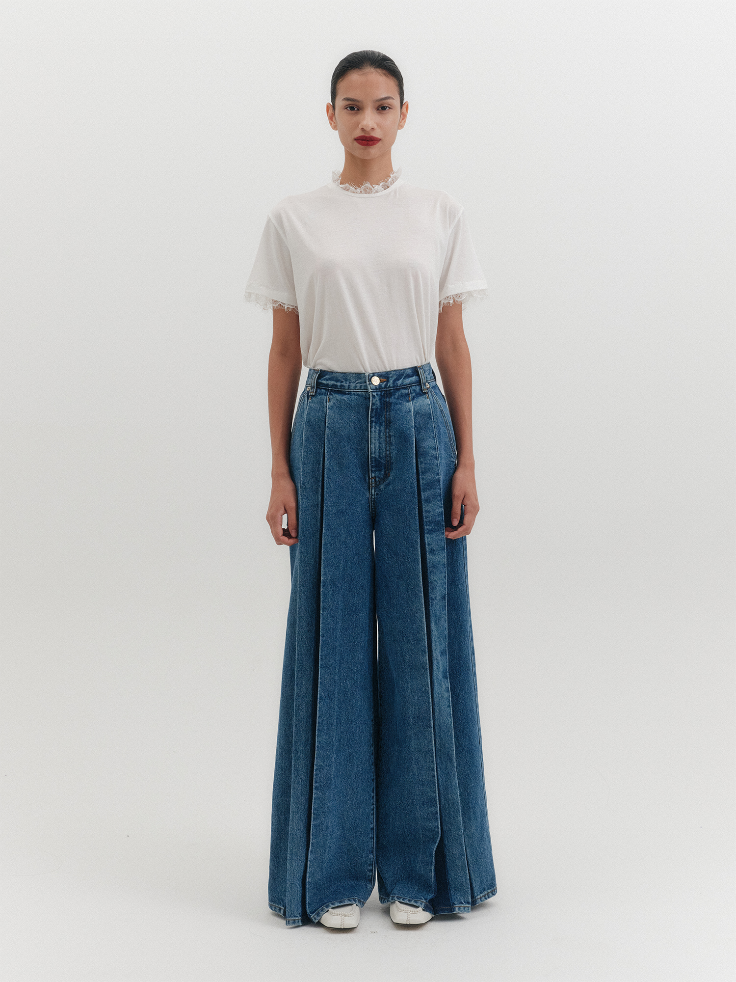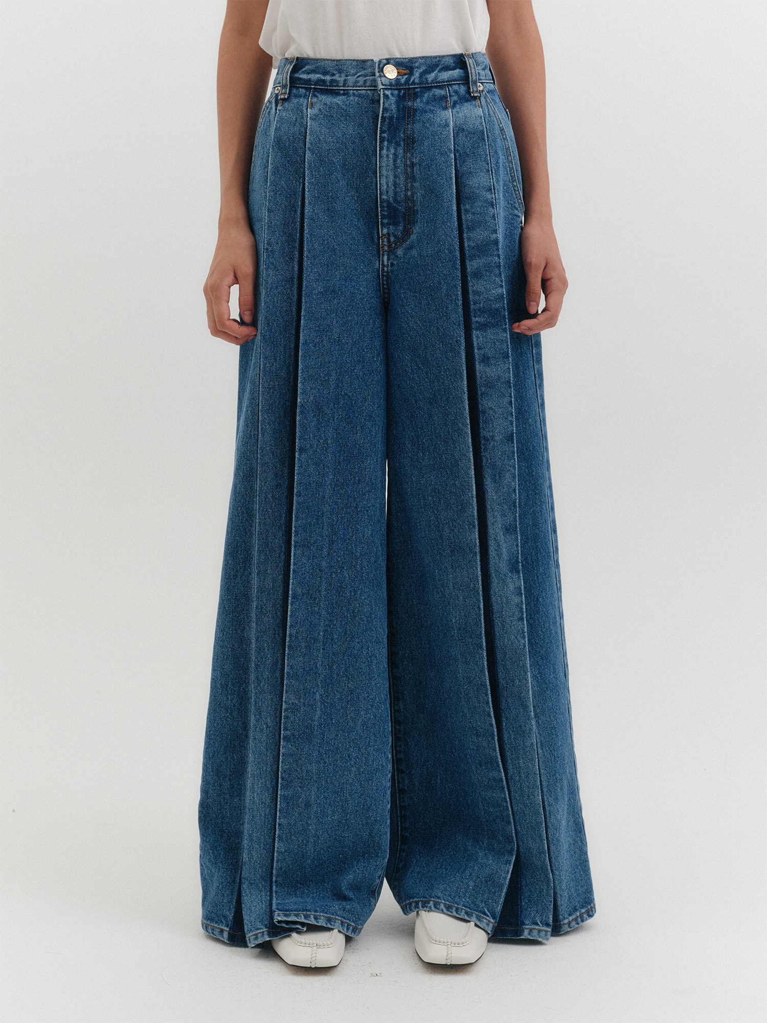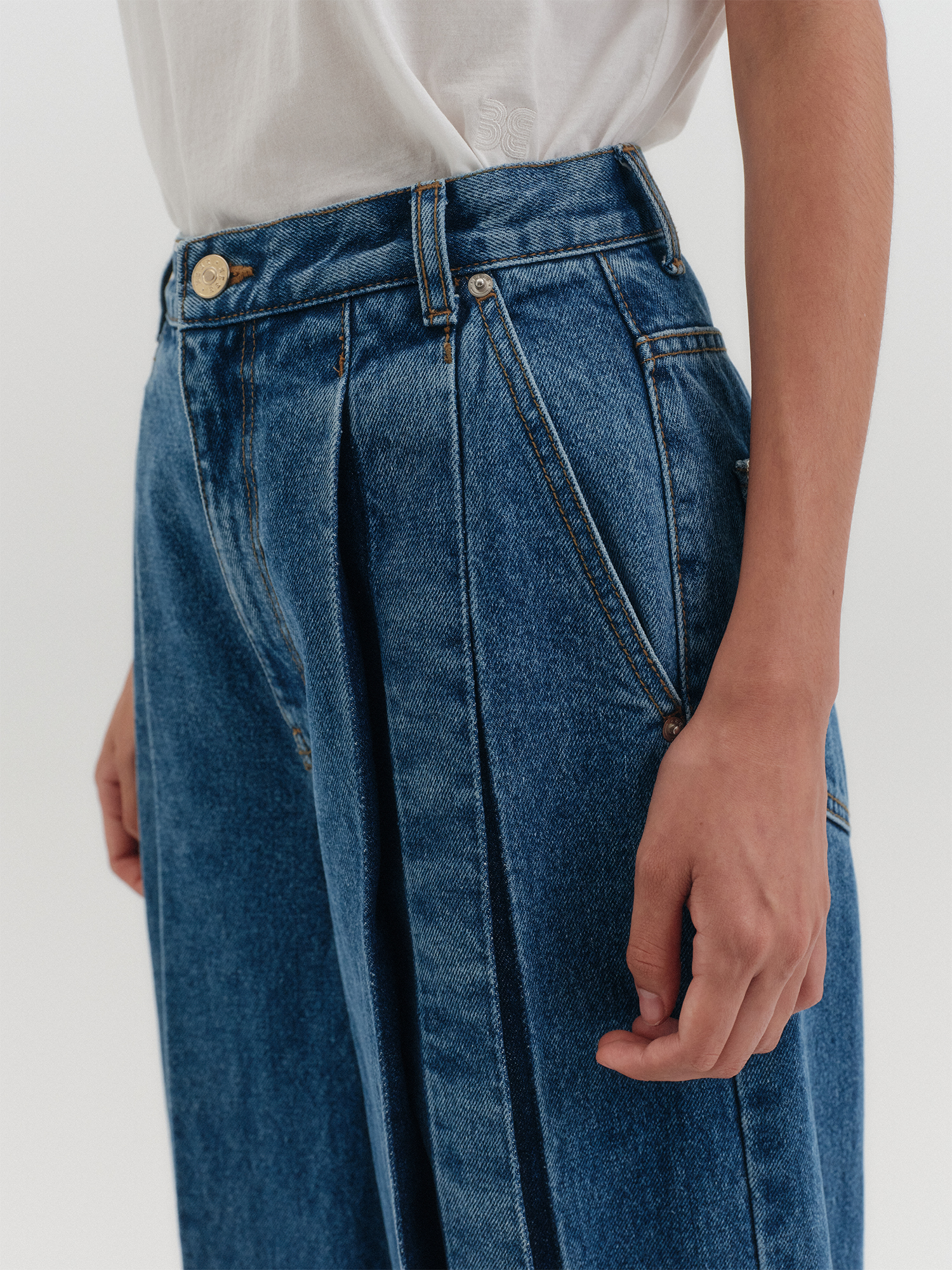 - 허리 중심의 핀턱 디테일로 구조적인 볼륨감