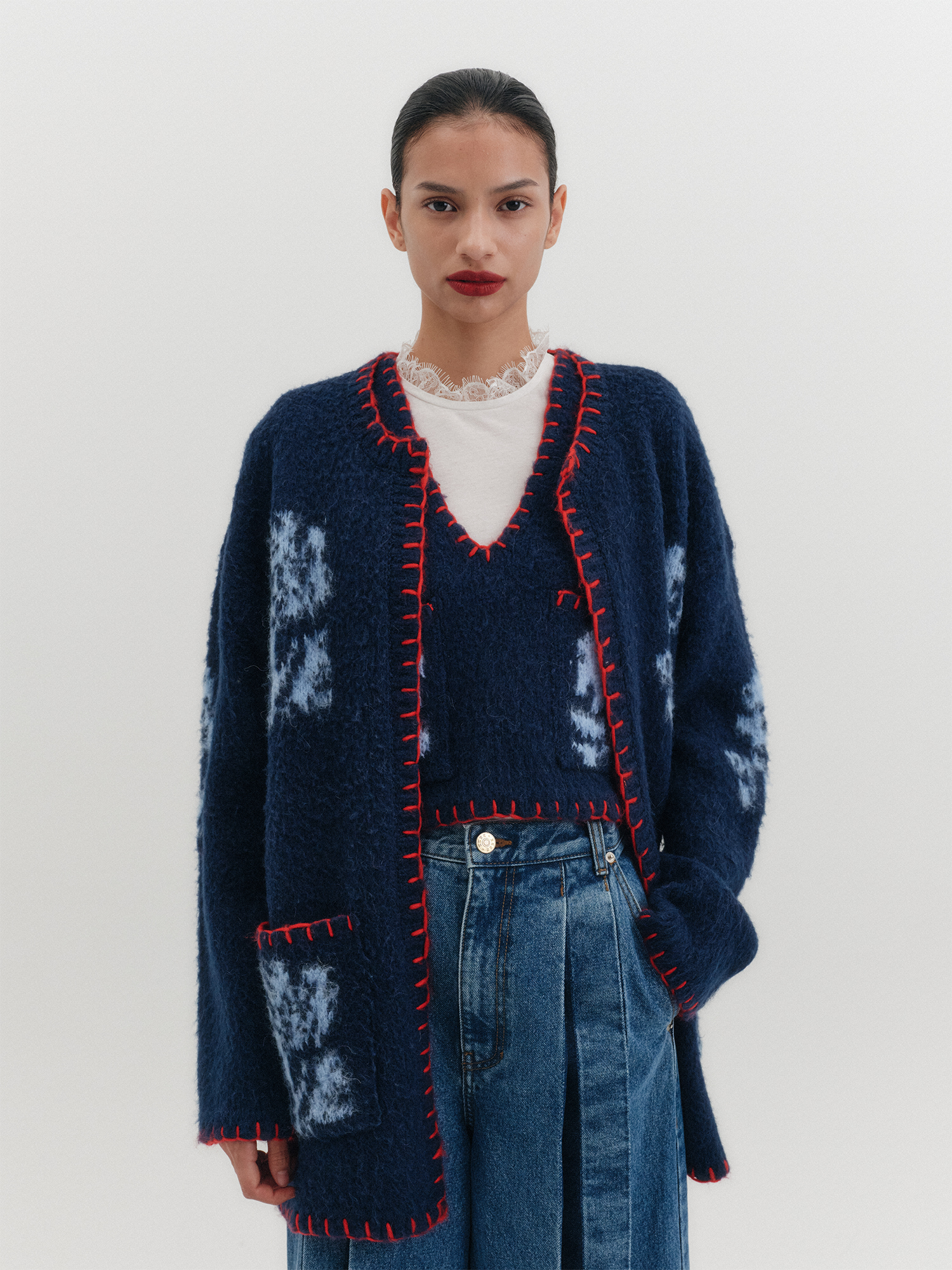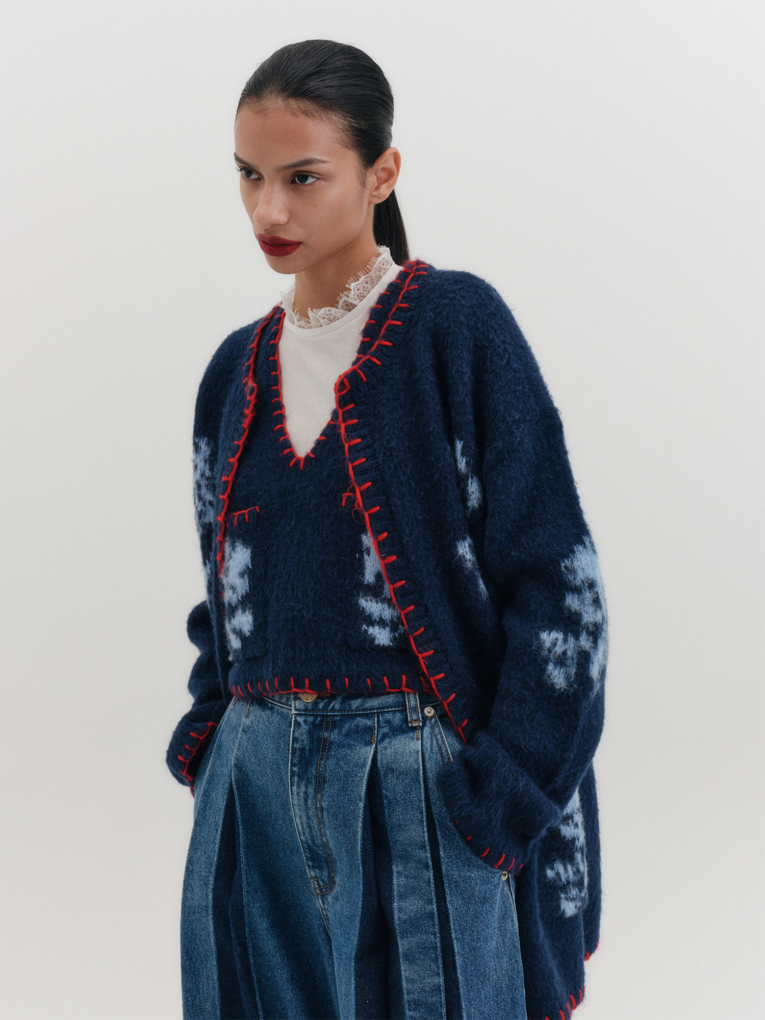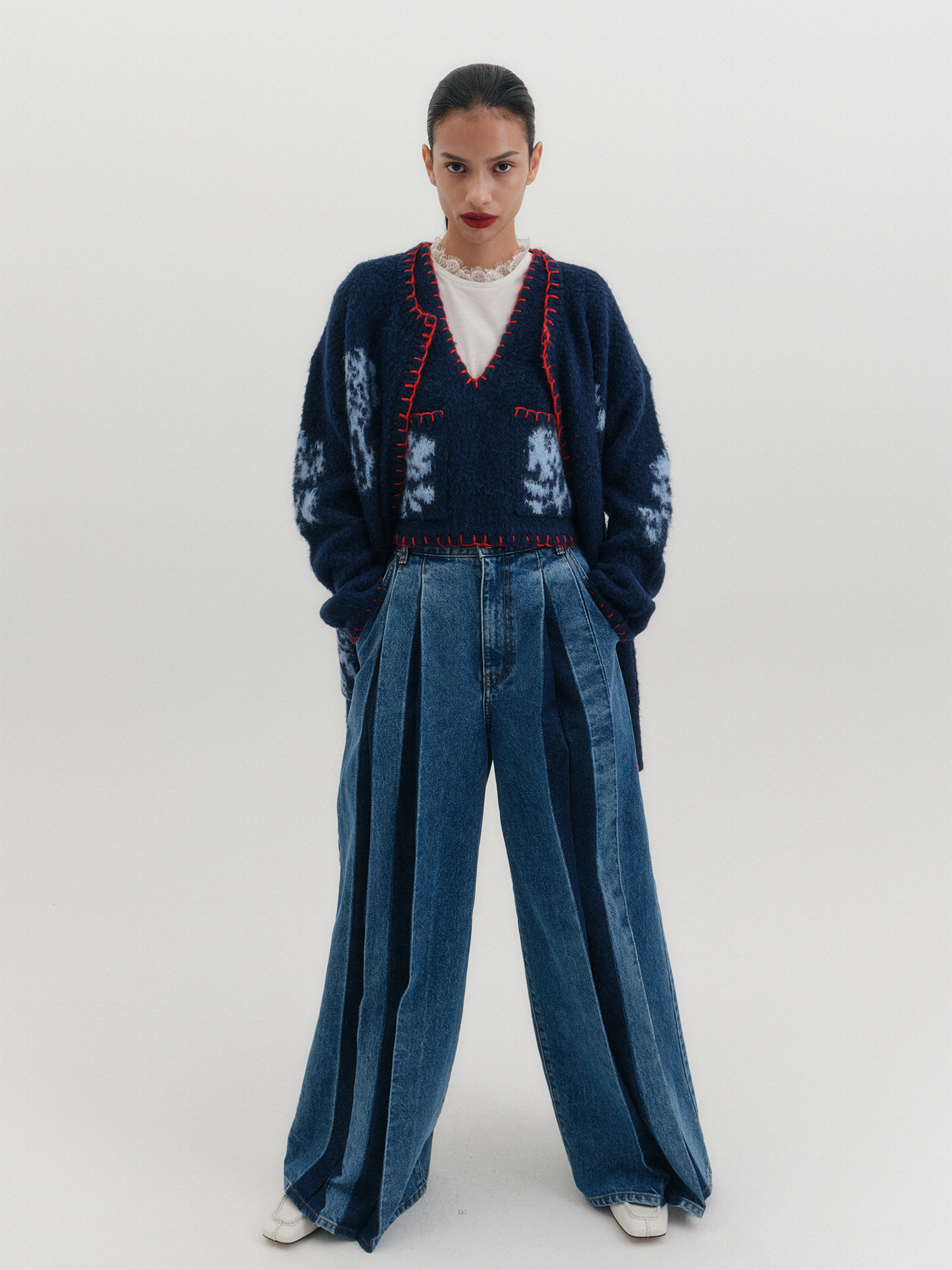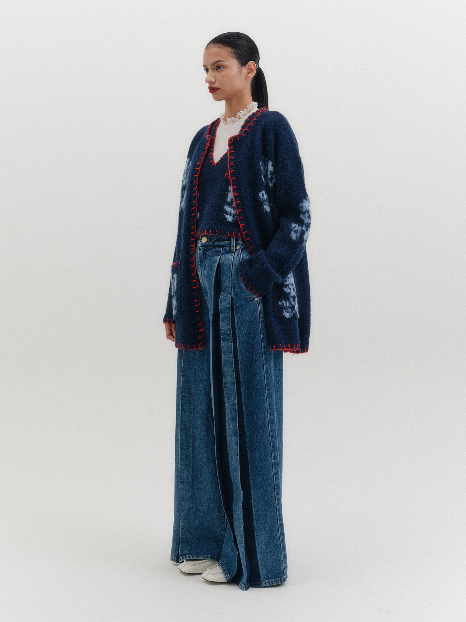 - 배색 플로럴 자카드 디테일