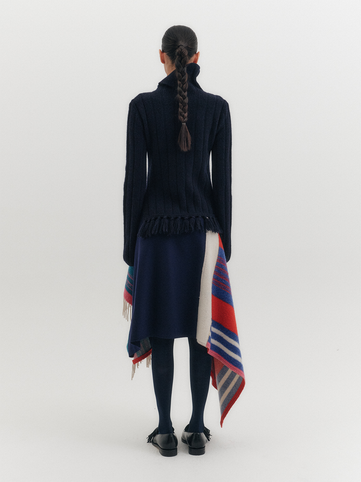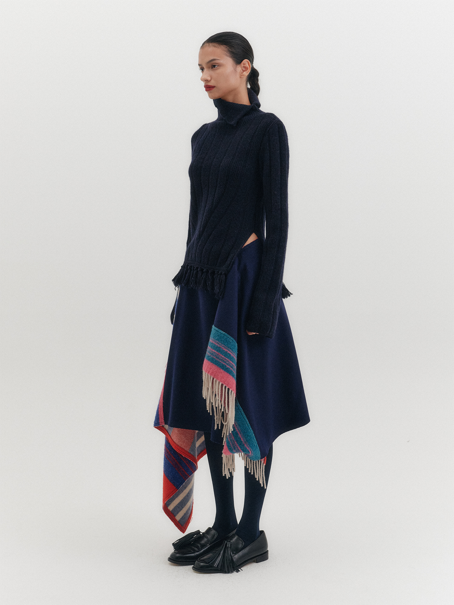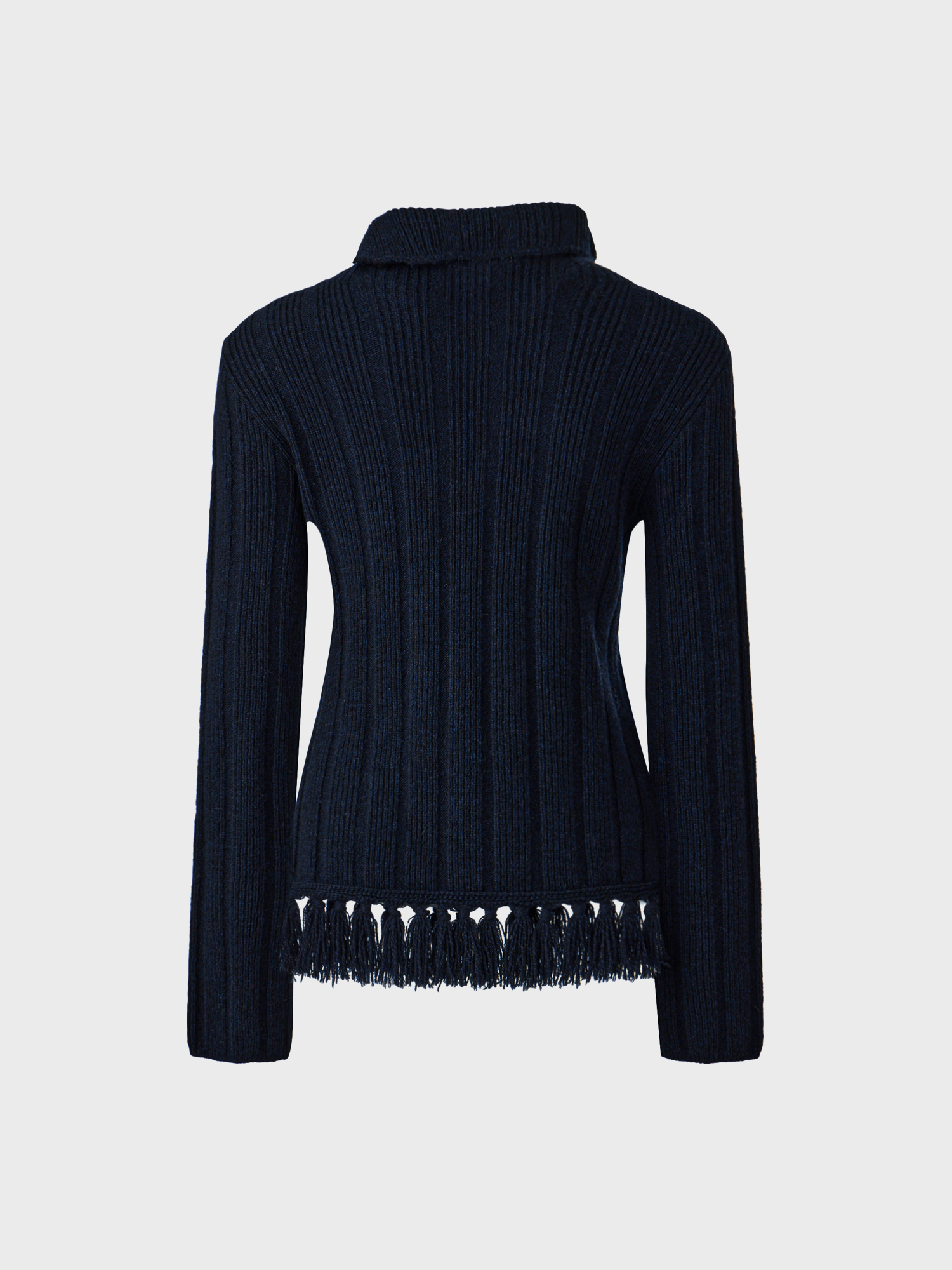 - 넥라인 슬릿 디테일의 퍼넬 터틀넥 디자인