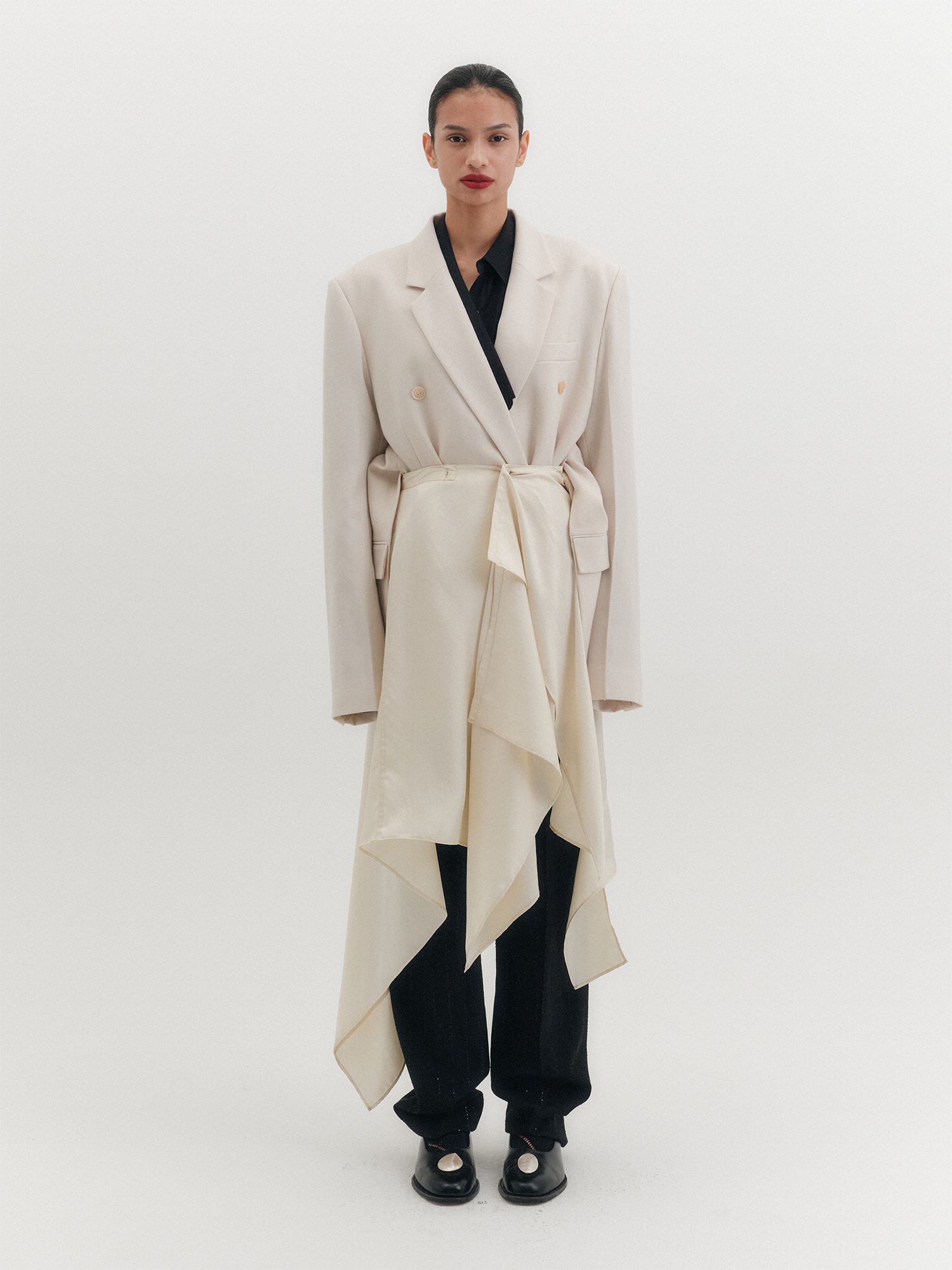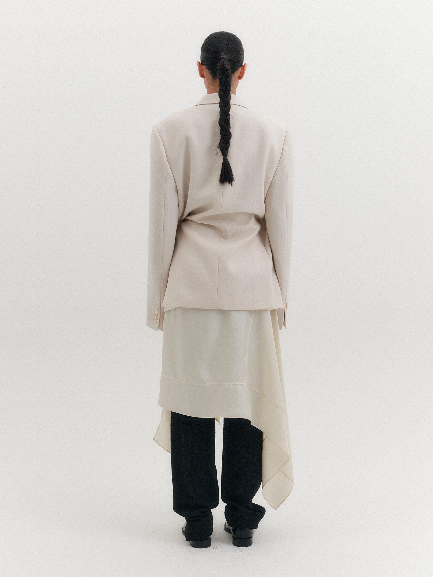 - 언밸런스한 기장감의 안감 레이어드 디테일