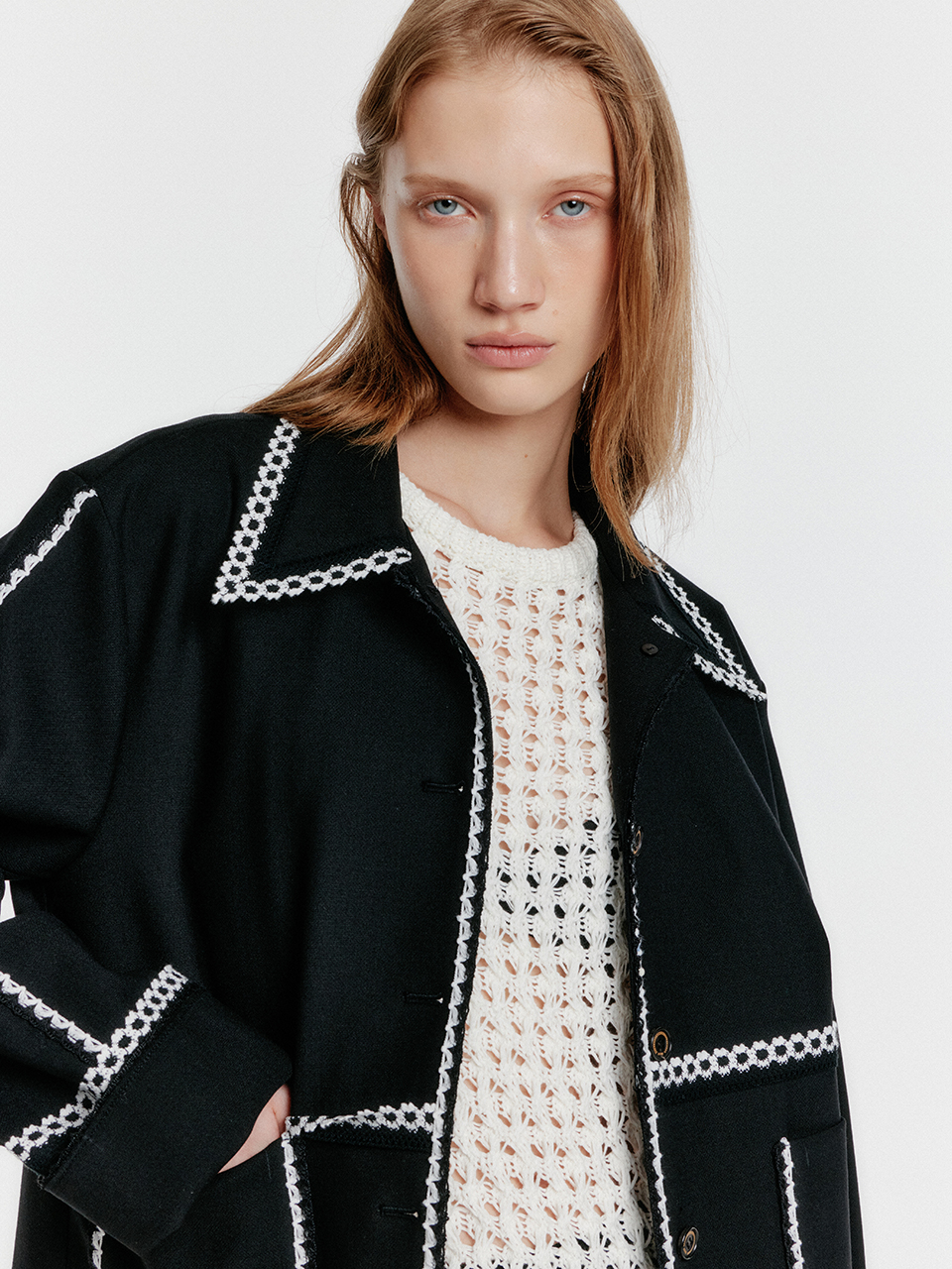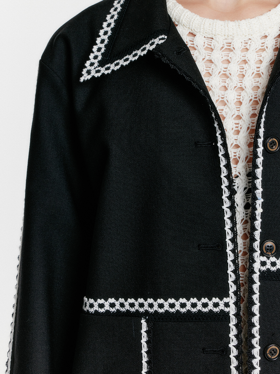 - 레이스 트리밍 디테일이 포인트인 숏 자켓입니다.