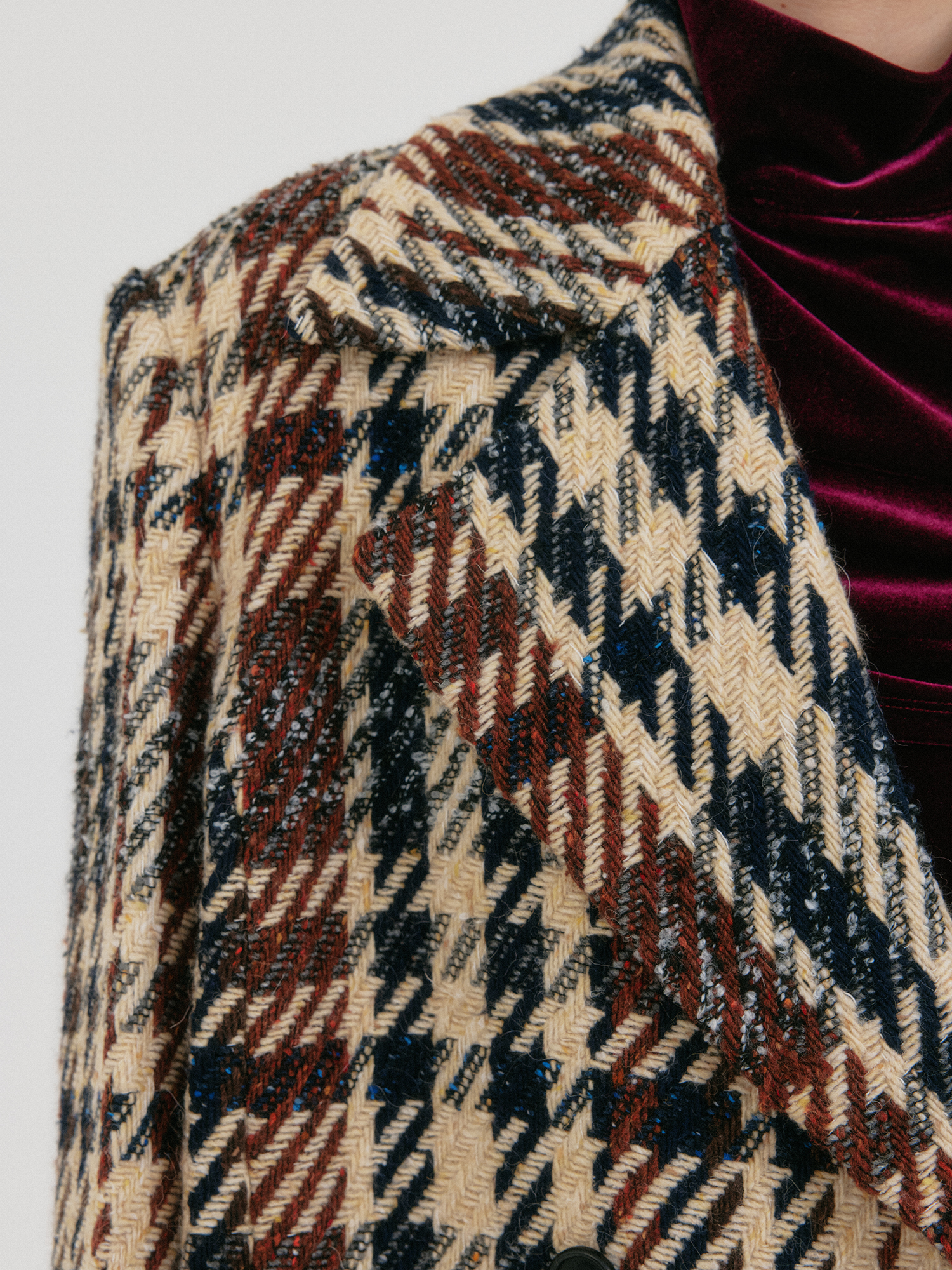 MATERIAL : Shell : Wool 38%, Acrylic 38%, Viscose 15%, Polyester 8%, Silk 1%Trim : Rayon 75%, Polyester 23%, Polyurethane 2%Lining : Polyester 100%