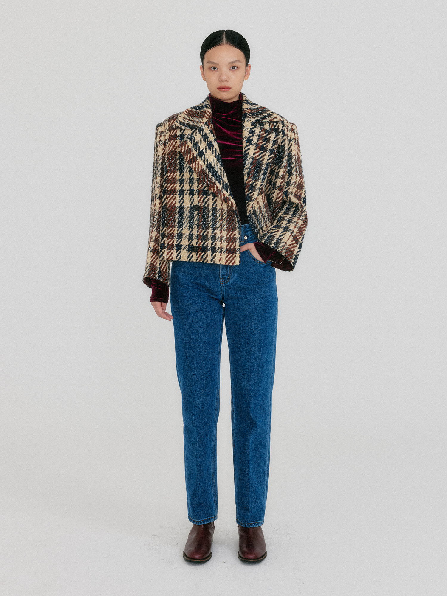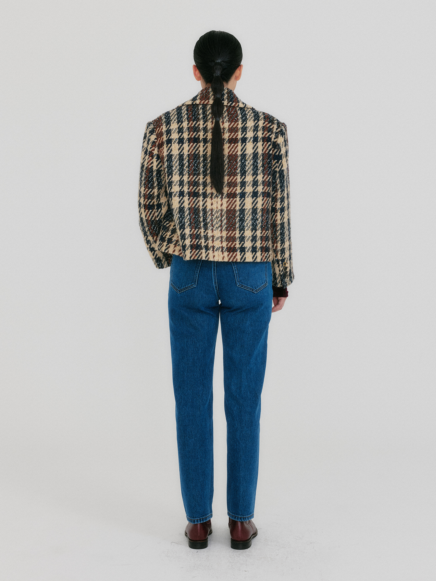 - 울 블렌드 소재의 더블 버튼 자켓